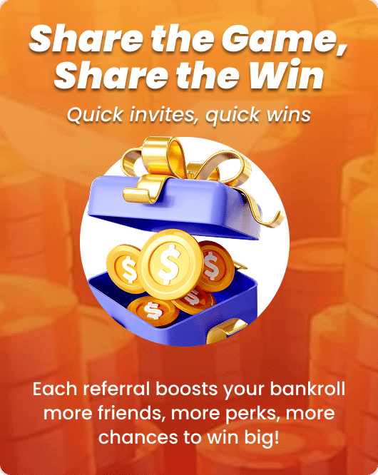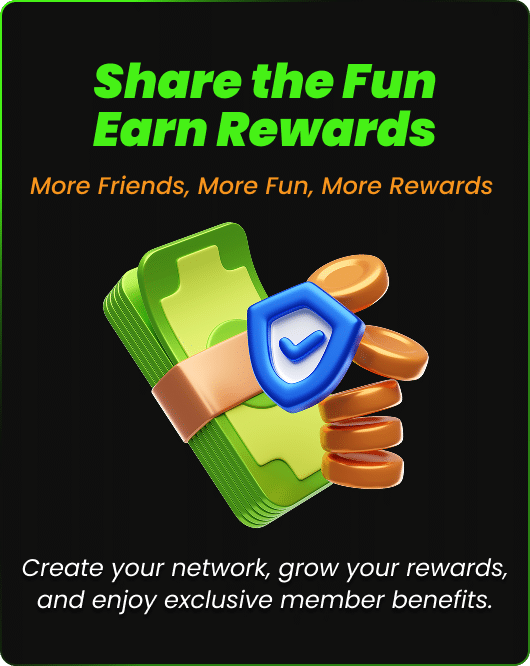 คุณจะได้รับส่วนแบ่งค่าคอมมิชชั่นการแนะนำเริ่มต้น 5% จากยอดชนะ/แพ้ของเพื่อนที่คุณแนะนำ